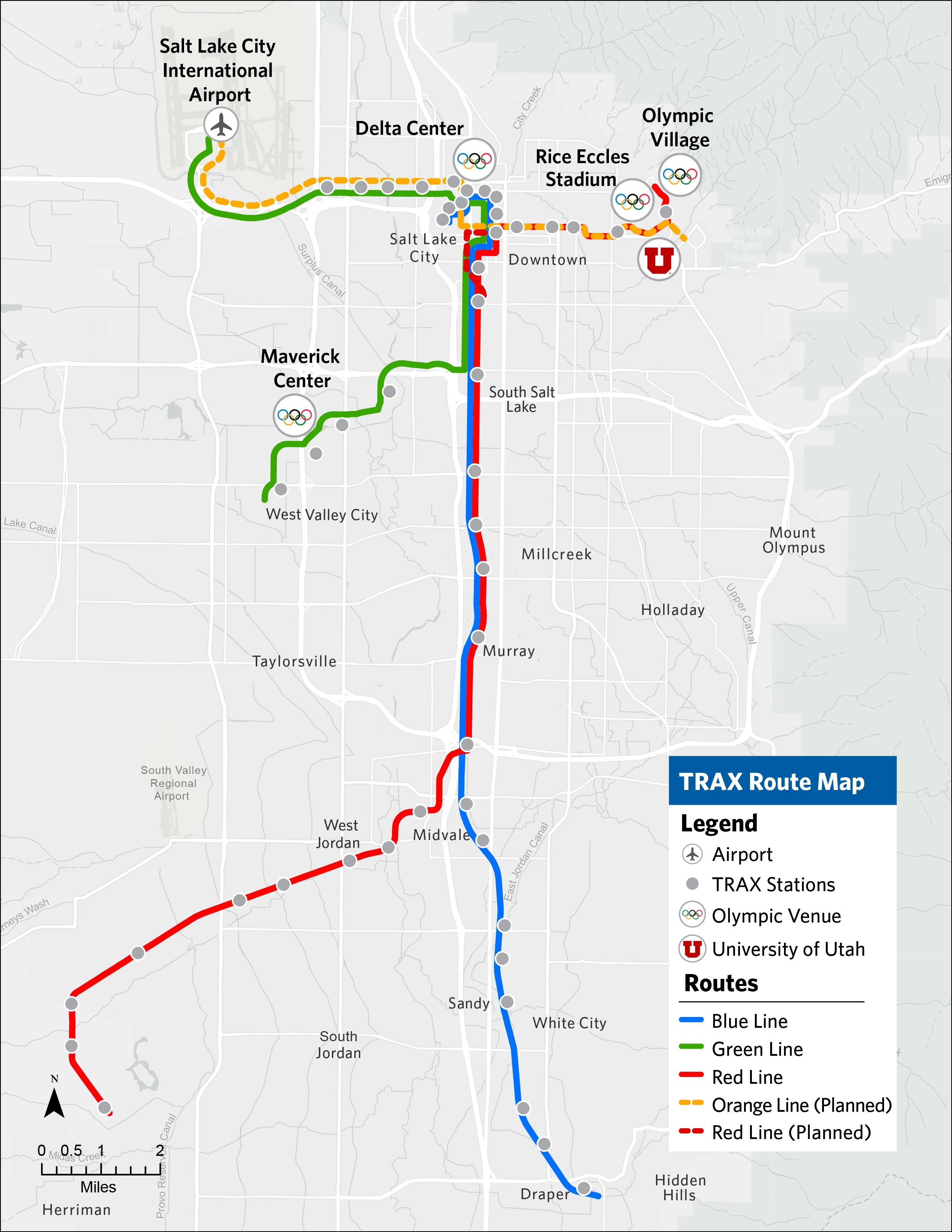 • In collaboration with UDOT, the Orange Line includes 8 new stations and new service between the Airport and the U of U Research Park.